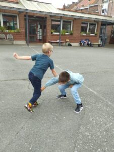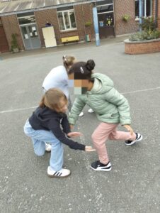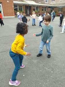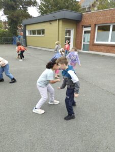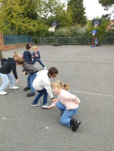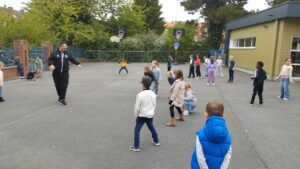 Grâce au club de basket de Roubaix, et à son entraîneur. Depuis 2 semaines, les enfants des 2 classes de CP découvrent le basket à l’école.